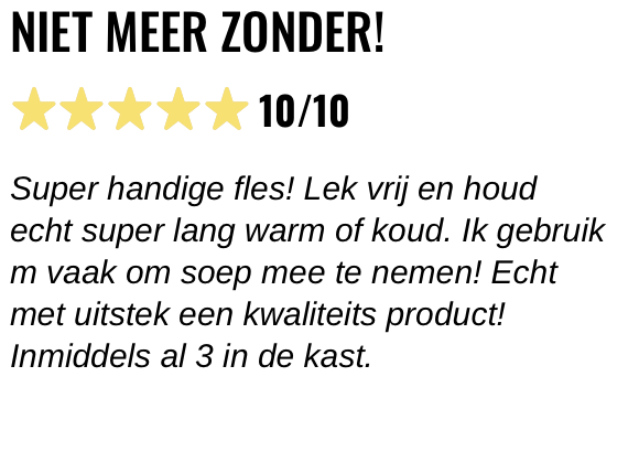 Super handige fles! Lek vrij en houd echt super lang warm of koud. Ik gebruik m vaak om soep mee te nemen! Echt met uitstek een kwaliteits product! Inmiddels al 3 in de kast.