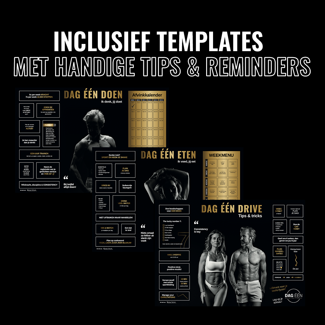 Dan leef je de lifestyle! Geloof het of niet, maar door 6 weken deze methode te volgen, gaat er een 'switch' om in je hoofd. Je weet dan niet beter en wilt ook niet anders meer. Je lichaam voelt goed, je bruist van energie, je slaapt lekker en je kan zelfs ook meer eten dan je deed, zonder dat je aankomt. Dus geen jojo-effect! Dit komt door de grotere verbrandingsmotor (spiermassa) die we in jou bouwen! Je metabolisme gaat omhoog en je spierdefinitie wordt zichtbaar. DAG ÉÉN staat dus letterlijk dag 1 van je nieuwe lifestyle!