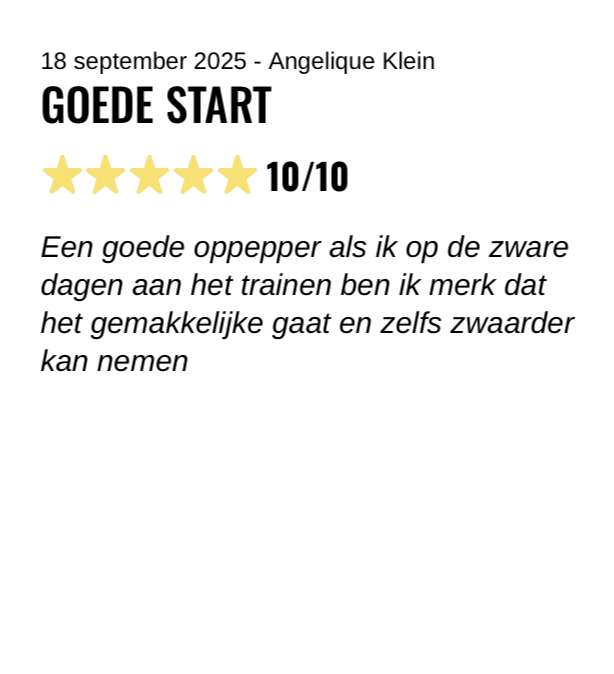 Een goede oppepper als ik op de zware dagen aan het trainen ben ik merk dat het gemakkelijke gaat en zelfs zwaarder kan nemen