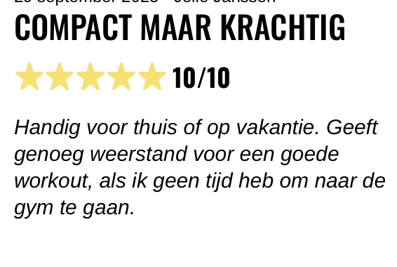 Handig voor thuis of op vakantie. Geeft genoeg weerstand voor een goede workout, als ik geen tijd heb om naar de gym te gaan.