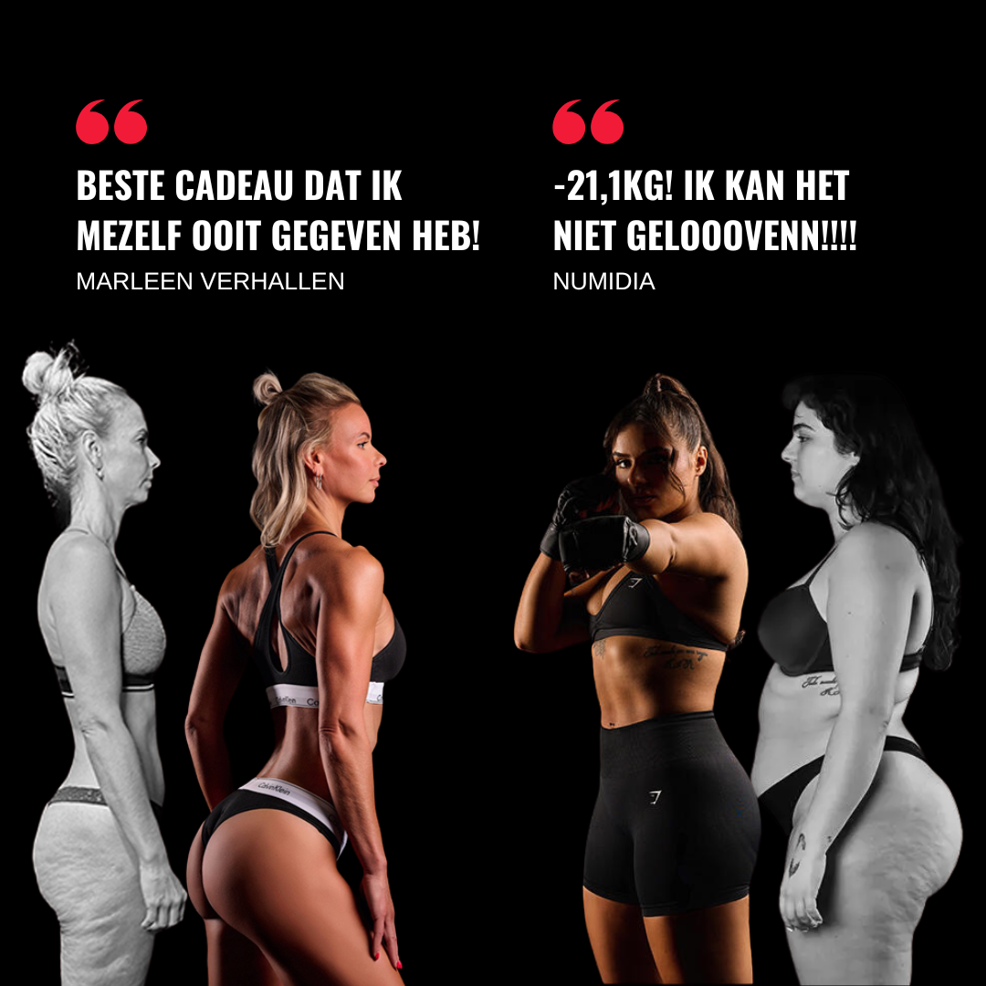 Zij realiseerden een lichaam, lifestyle en mindset waar ze voorheen niet eens van durfde te dromen. Zij verloren gemiddeld 21,6% lichaamsgewicht en 34,7% vetpercentage.