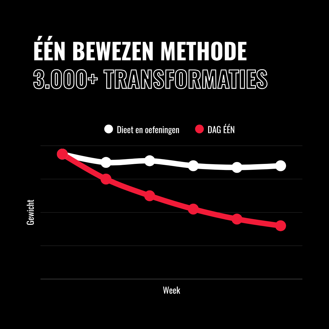 Met de DAG ÉÉN Methode behaal je in 6 weken het fysiek waarvan je dacht dat het te laat was. Geen crashdieet, geen eindeloos gedoe - maar een compleet, slim plan op maat dat precies werkt voor jouw lichaam en leefstijl.